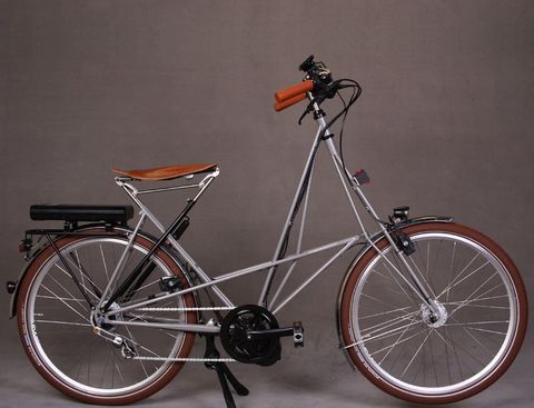 We created this lady’s Pedersen. For stopping she can slide into the free space between saddle and handlebar. Because of the special frame geometry, it’s possible to put your feet on the ground while stopping. The ladies’ mockup was applied for a patent in 1900 and made bicycle in skirts possible.